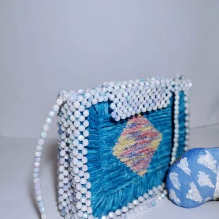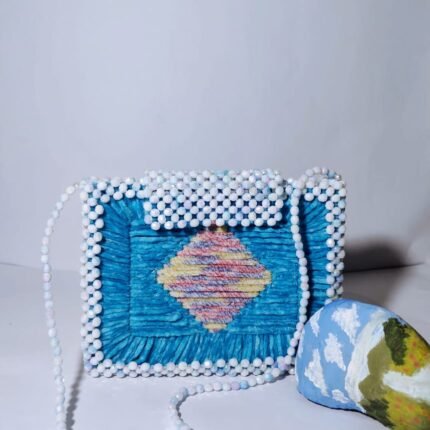 This elegant white beads bag by bushanaya features a pristine, all-over beaded texture that exudes sophistication. Its clean, classic design is both timeless and versatile. The structured shape adds a touch of refinement to any look. Ideal for adding a touch of grace to both formal and casual outfits.