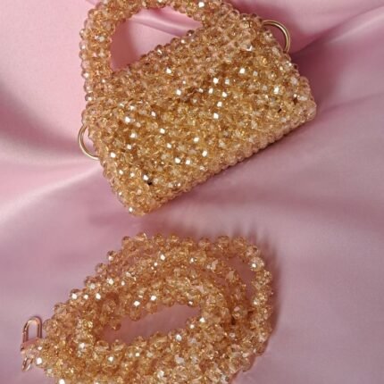 With its tiny size and delicate strap, this mini bag is perfect for carrying the bare essentials, such as a phone, keys, or lip balm. The crystal pink shining beads mini bag is a delightful and charming accessory that is sure to bring a smile to anyone’s face.