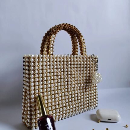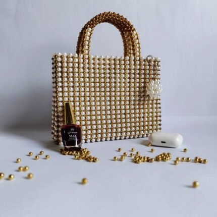 White and golden bead bag